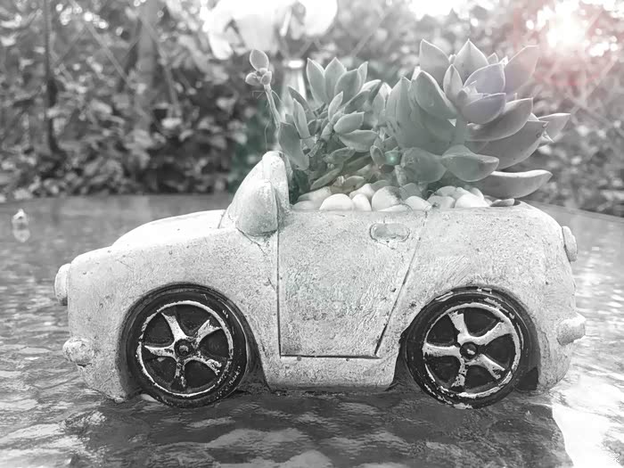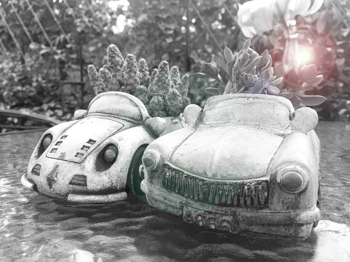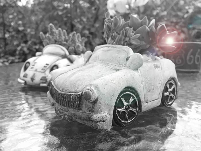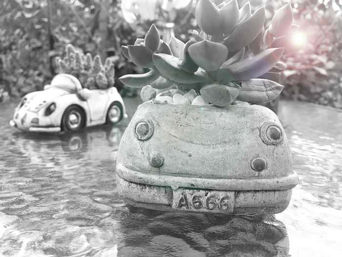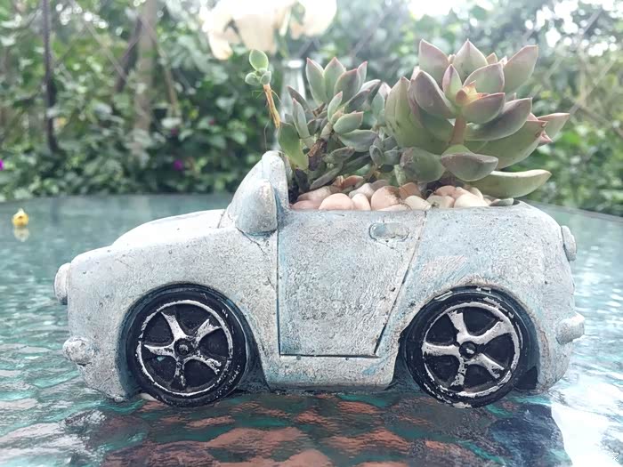 公司在三圣乡某农家乐组织团建活动,看到了许多有意思的小盆栽,有两款汽车形状的尤其引人注目,特意用手机摆拍了几张,前来分享分享。手机拍摄,像素和光线都比较一般。回来特意搜了一下,造价原来非常便宜,泥土烧制,后期涂色而成。小成本,小创意,增色效果明显。