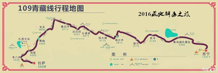 进藏前准备的路线图二(走青藏线出藏),拉萨至西宁近2000公里。