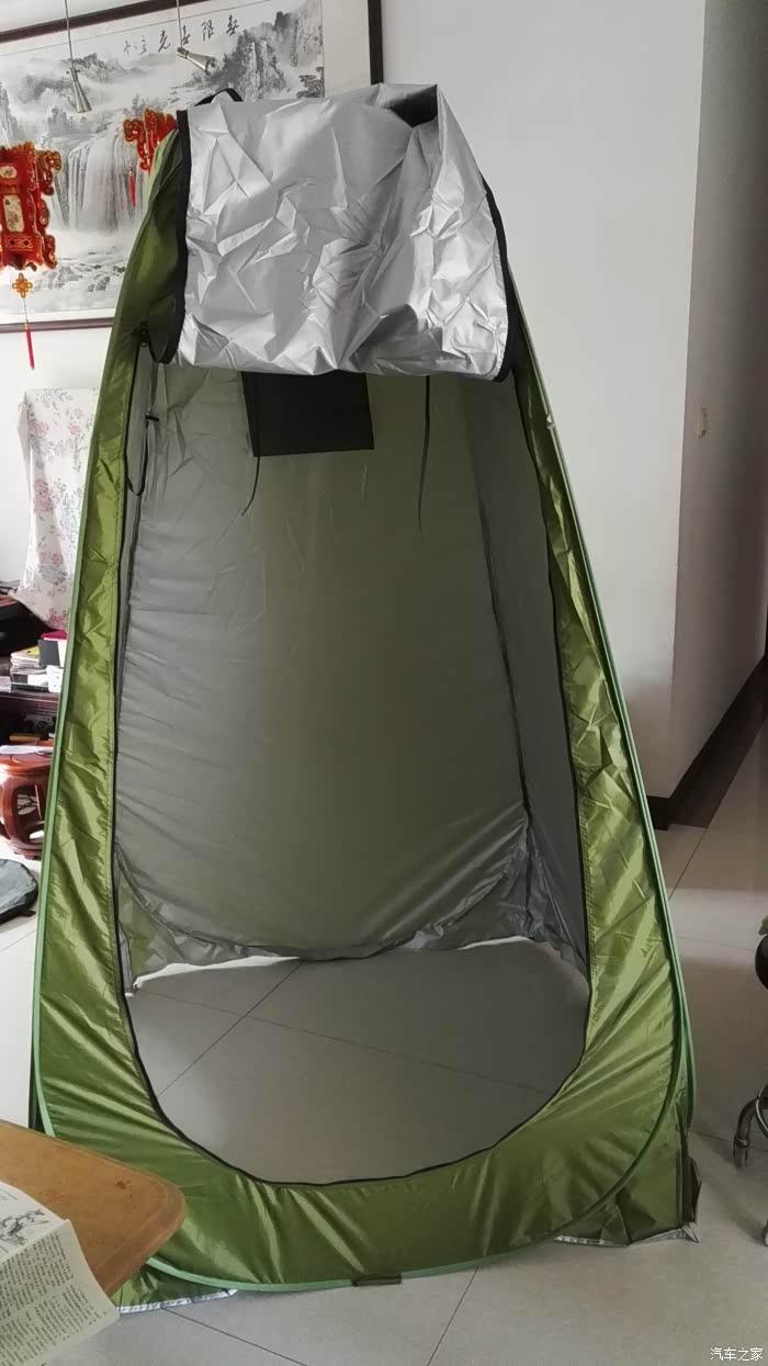 多功能用途的可折叠沐浴帐篷,一路上多次用来作防风厨房或临时厕所等,而折叠起来只有一点点,不占空间。