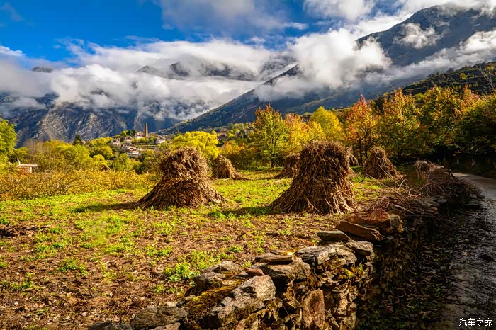 丹巴中路藏寨---她背倚日巴龙山和莫日山,面朝墨尔多神山。中路藏寨现存古碉81座,宁静的田野与美丽的藏寨交相辉映,中路藏寨被称作“摄影师的天堂”。 听说有三个观景台,日出日落不同的观景台,我去的是拍日出的观景台。