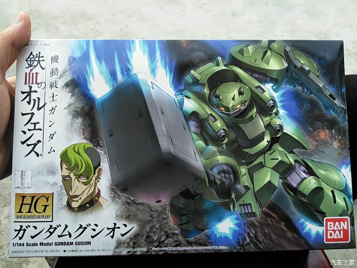 接着上周的流星号,本周和大家一起分享的是“铁血的奥尔芬斯”第一季中的古辛高达,俗称“蛤达”,为什么叫蛤达呢?看下去就知道了。因为HG的模型售价较为便宜,基本在50元左右,所以我一般都是一次购入4盒然后慢慢拼,今天就是本次购入中的第二盒,虽然汽车之家的模型论坛好像对这种模型不怎么感兴趣,但也还是希望和大家分享分享,希望能提点模型论坛的人气吧,话不多说开始上图。老惯例,先来看看八角尖尖的包装盒正面,万代一贯风格的涂装,看到这里应该可以理解为啥叫蛤达了,有木有像一只蛤蟆
