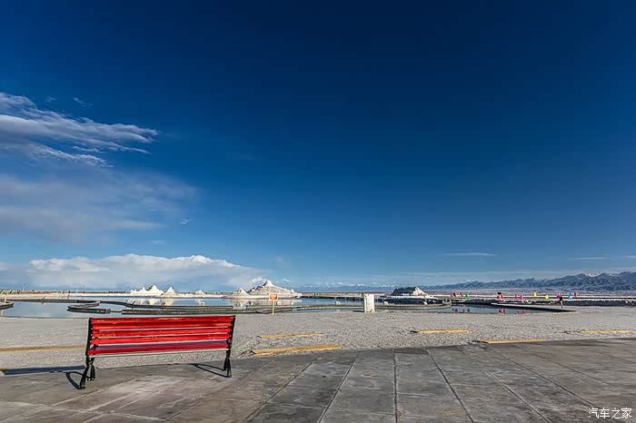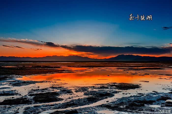 夕阳来临了,游人们驻足盐湖边欣赏晚霞的天空。P30