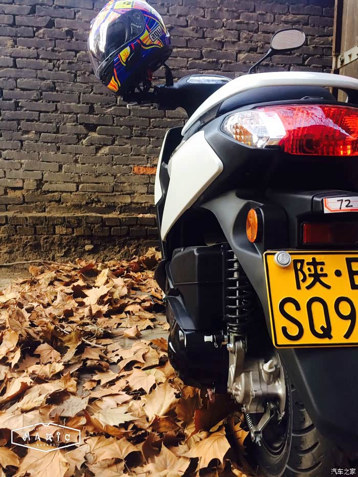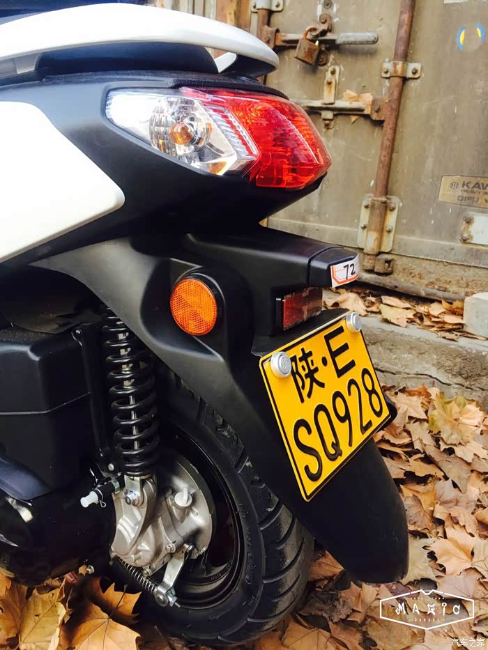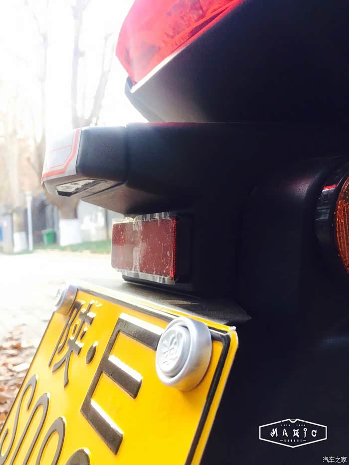 4、发动机。怠速声音很小,连续骑50KM,伸手摸发动机居然不烫,不知道大家的是不是也这样。起步推背感清晰、有力,0-25左右会有抖动,过了25很平稳,由于磨合最高到50,更高速度没有尝试。
