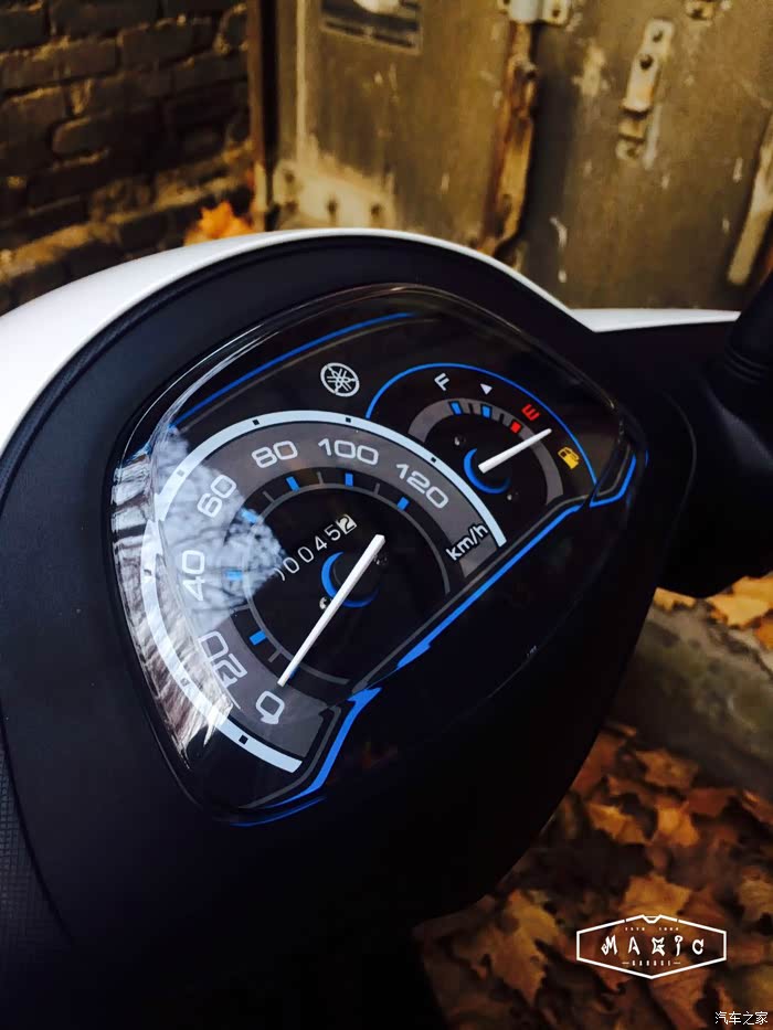 1、仪表。提车以后,老觉得仪表的颜色不喜欢,土了吧唧的蓝色。昨天晚上磨合车,开了车灯以后,不由得一阵惊喜,这仪表背光,晚上实在太漂亮了,说爱不释手一点也不夸张,再一次惊叹雅马哈的品控。
