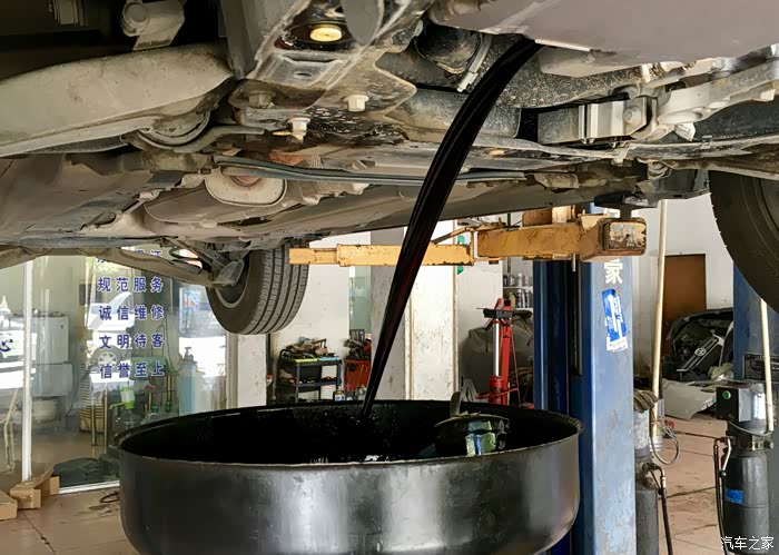 跑了一万多公里黝黑的旧机油一涌而出