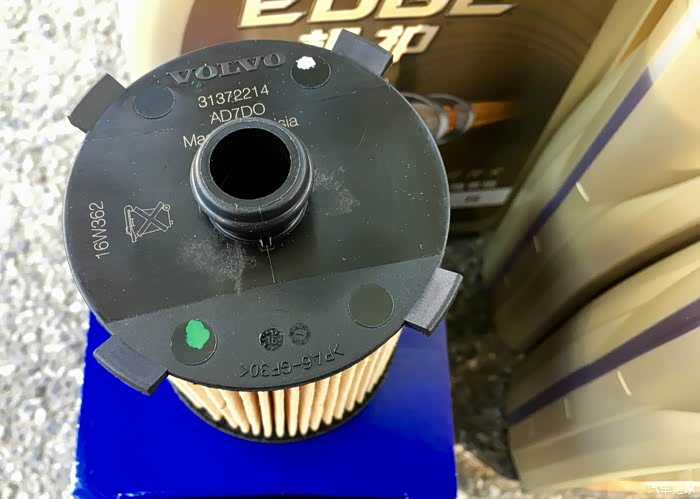 本次保养所需的材料,6升嘉实多极护5W-30 以及原厂机油滤芯。沃尔沃“新动力”原厂机油为嘉实多极护沃尔沃专享0W-20 V,查阅Castrol EDGE Professional V 0W-20 相关资料得知这款油40摄氏度运动粘度47,100摄氏度运动粘度8.84,属于粘度比较高的20粘度油。综合性价比、稳定可靠等因素考虑还是选择了这款嘉实多极护5W-30 FE,适合高速长途行驶以及激烈驾驶。机油真假鉴别本帖暂不讨论。