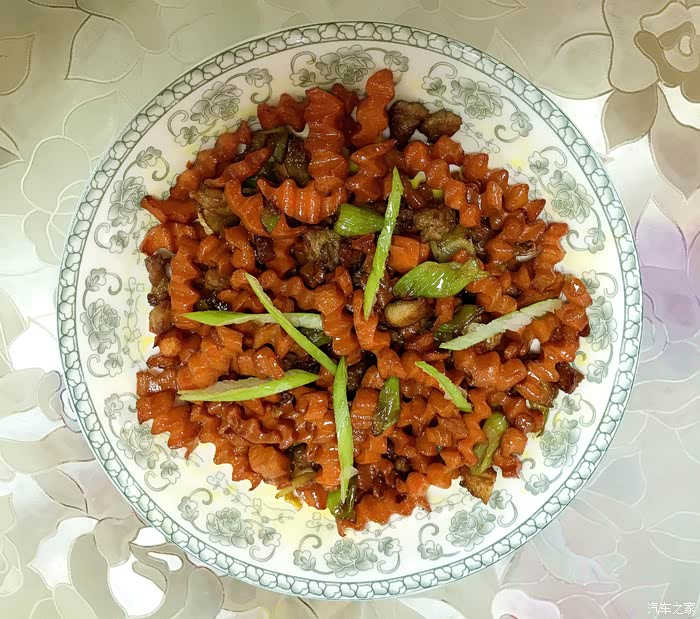 胡萝卜炒肉丁,虽然葱花有些过火,肉也微微有些糊,但是微脆的的胡萝卜带着淡淡的肉香,还是一道非常好的下饭的菜。