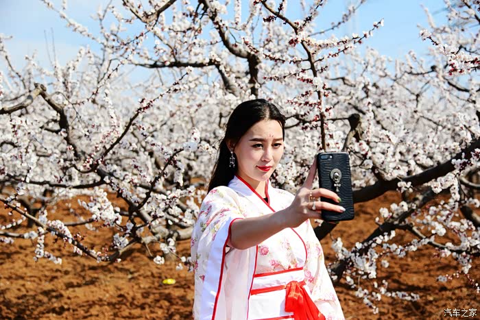 拍完就去吃饭,当地五龙沟的农家乐,桃花掩映下的X7,真是美