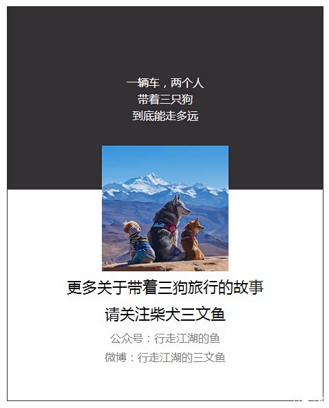 有几个问题,是大家普遍比较关注的,在这里先做说明:我们在2013年已经带着狗狗进过一次西藏,对狗狗上高原的情况,心里也有了把握。2013年带狗进藏的老帖,可点我头像下方的帖子阅读。【关于高反】狗狗会不会高反,这是被问的最多的问题。从我们遇到情况来看,孩子们适应能力很强,没有什么问题。但从科学的角度来说,狗狗确实也会有高反。高反是很正常的反应,需要主人细心观察。一般狗狗出现呆滞、舌头发紫、牙龈发白等缺氧症状就可能是高反了。减少狗狗运动,及时提供充足氧气,水里增加一些葡萄糖可以缓解。需要注意的是,某些犬种,比如短鼻狗,本身就容易呼吸困难,这类狗狗并不适合上高原。【关于住宿】我知道大家都对带着狗住宿...
