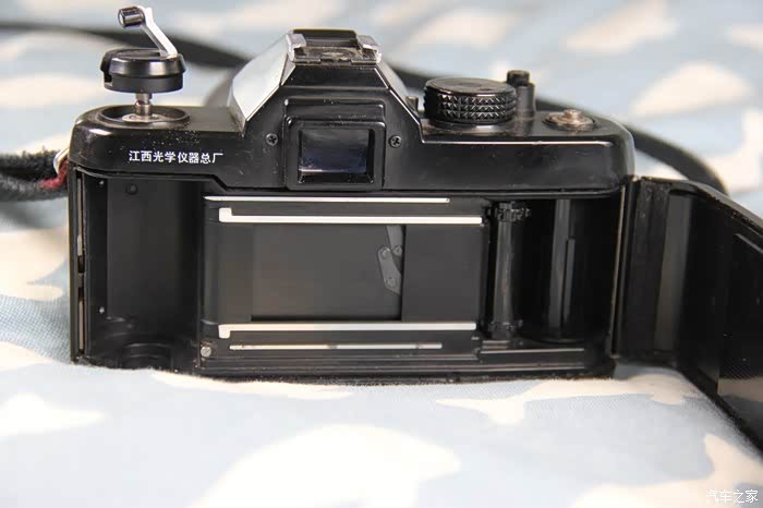 看到这里,知道怎么打开后盖取胶卷了吧,就是把这个摇把往上一提。那个时候相机本来就很少,很多人根本不知道怎么装胶卷和退胶卷,导致了很大的浪费啊。下面咱们打开看看。