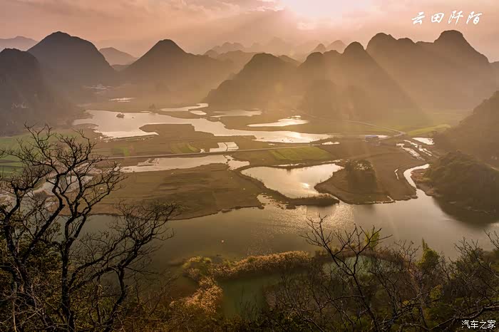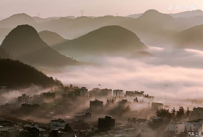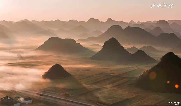太阳高挂,云雾散去,远方罗平县城隐约可见。