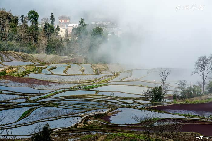 若说雪域高原的太阳是慷慨洒脱,热情豪迈的汉子,那哈尼梯田的太阳则是带着冷傲披着仙气的神女,那些风中吹不散的云雾就像游移在阳光与大地之间微妙的暧昧,如梦如幻,像极了月老与孟婆,宿命般的,一个牵了情思,一个断了红尘。