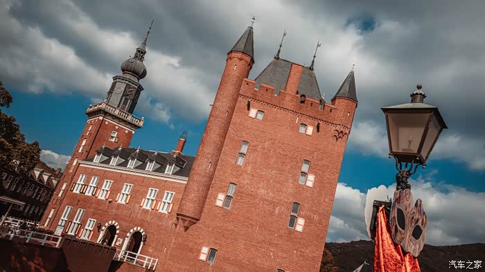 双尖塔城堡前放下的吊桥是我们进入豪斯登堡园区的必经之路,从侧面看起来很有欧洲的风情。