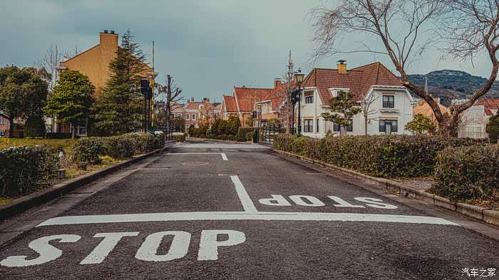 行人停车线标注着大大的STOP字样其实很适合街拍构图,可惜此刻只有自己一个人举着相机在寒风中取景。
