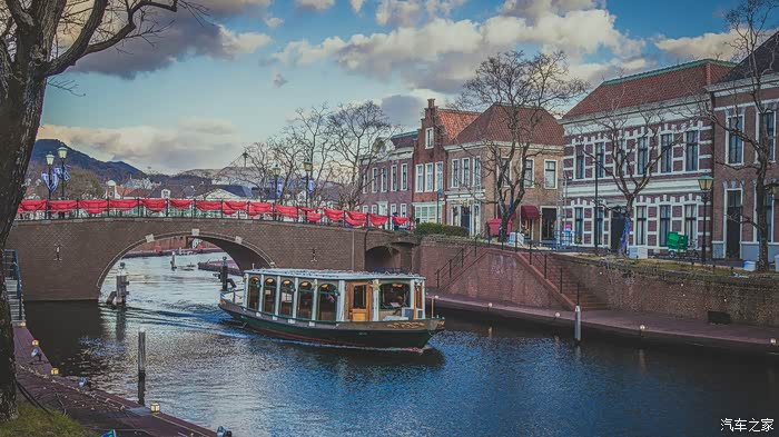 沿着阿姆斯特丹城镇区域水道岸边前行,观光游艇划破河面的平静,船尾荡漾出狭长的涟漪。