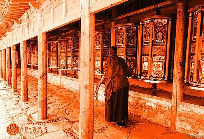 一个喇嘛在转经筒