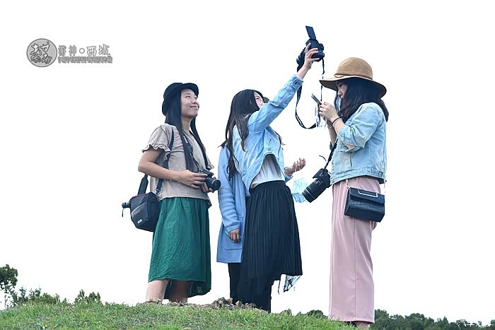 等待夕阳的游客,都在架设着各自的“长枪短炮”