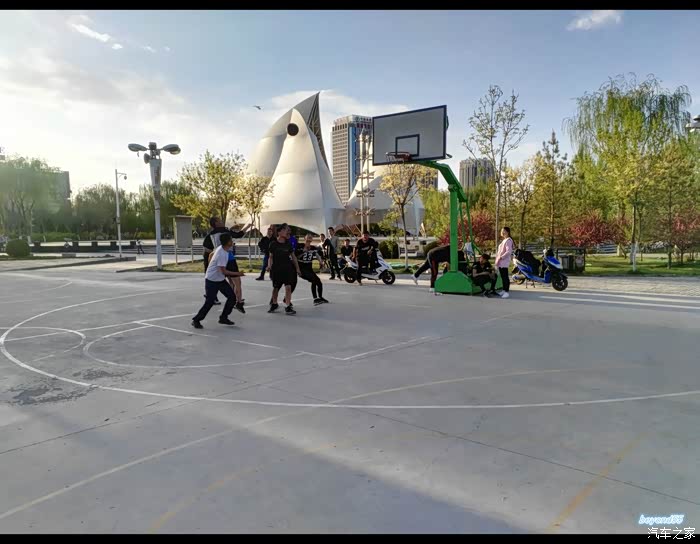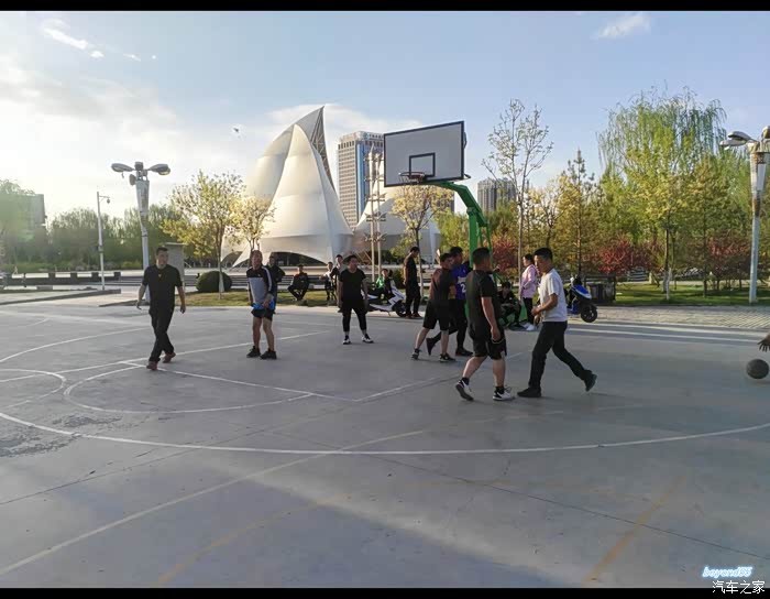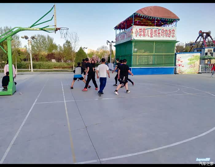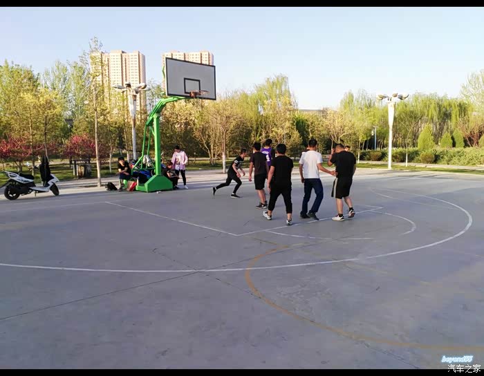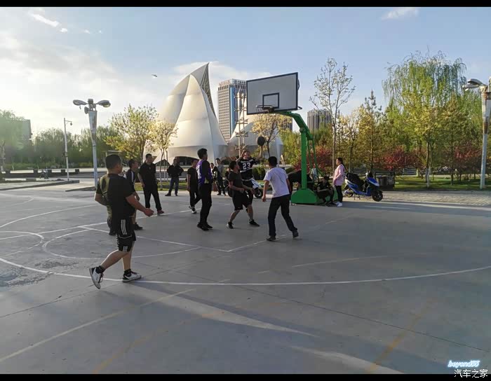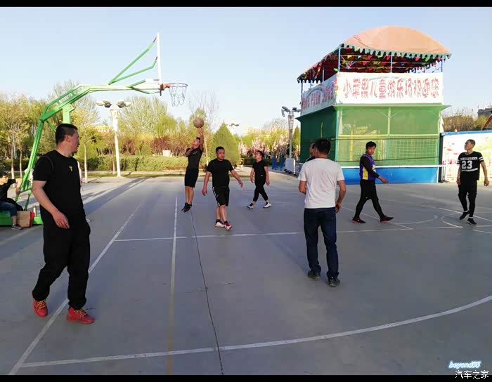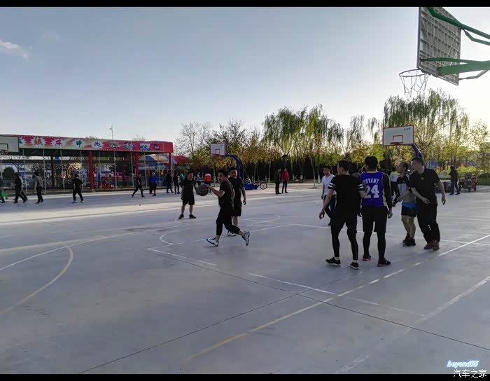 今天场地里人特别多,四个篮筐都有人打,有些朋友都很久没有来了,今天这么好的天气,这么