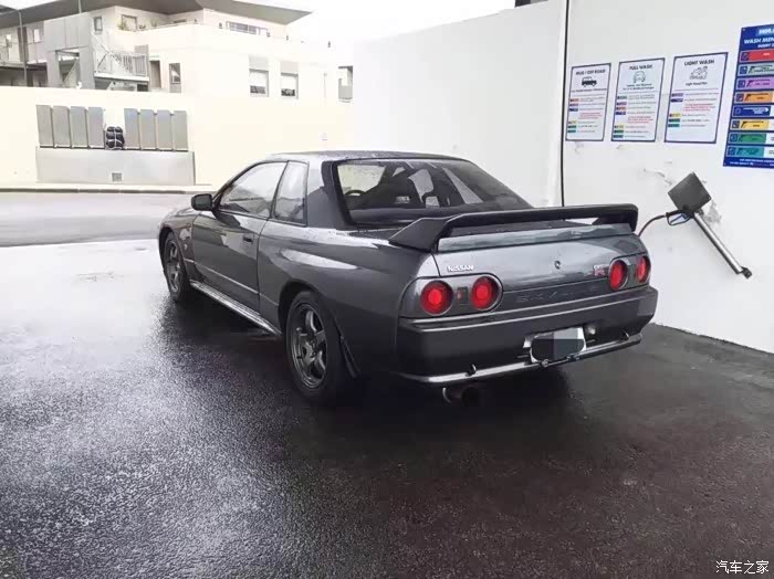 GT-R代表性的四圆形尾灯一直保留到今天的R35上仍然在沿用。还有原厂的大尾翼,少了尾翼车尾感官上还会有些秃。粗管子直排的排气放在黑色R32上简直完美。