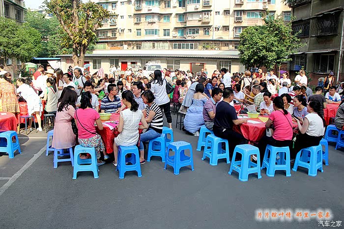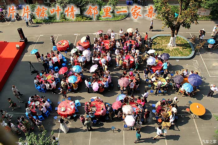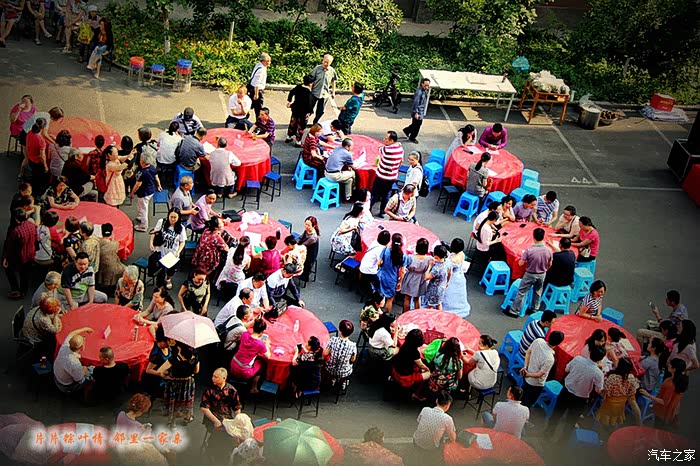 骄阳似火的天气与邻里的热情一样,火辣辣的!一大早,各家各户就来到了现场,场面热烈,爬上楼顶俯拍一张……