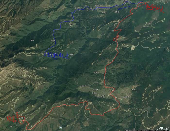 蓝色线路为很窄的盘山水泥路