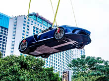 百万豪车高空吊 迈凯伦GT飞檐走壁